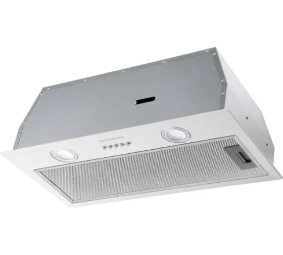 Работает в двух режимах - отвода, при подключении к системе вентиляции, и рециркуляции, при использовании сменного угольного фильтра. Мощность 100Вт.